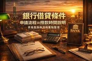 最新消息 銀行借貸條件申請流程與撥款時間說明:資格查詢與流程重點整理 銀行借貸條件主要包括穩定的收入證明、良好的信用紀錄以及完整的申請資料。銀行通常會要求近六個月的薪資轉帳紀錄或營業報稅資料,並查詢聯徵中心的信用報告,評估申請人的還款能力與信用狀況。若有遲繳或呆帳紀錄,核貸機率將大幅降低。建議申貸前先檢查自身條件,準備好相關文件,必要時可尋求保人協助或諮詢專業貸款顧問,以提高銀行借貸成功 Read More » 14 4 月, 2026 尚無留言