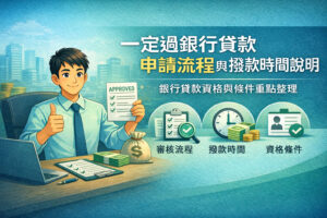 想追求「一定過銀行貸款」,需先了解銀行的核貸條件,包括年滿20歲、有穩定收入、信用良好且無重大信用瑕疵。若具備正職工作與正常薪資入帳,成功率將大幅提升。沒有收入者則須提供其他財力證明或尋求保證人協助。本文詳解銀行貸款的申請流程、常見卡關原因及實務解決方式,並提供加快審核的實用建議,協助您在資金壓力下做出理性選擇,提升銀