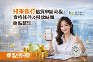 將來銀行信貸主打全線上申請、快速審核,特別適合臨時資金需求者。只需年滿20歲、具備台灣國民身分及本國金融卡,即可透過將來銀行APP或官網申請,流程簡便且無需親跑銀行。審核通常1至3個工作天內完成,資料齊全最快當天撥款。若遇補件或資料異常,核貸時間可能延長。建議申請前檢查信用狀況並備妥資料,以提升核貸效率。將來銀行信貸讓